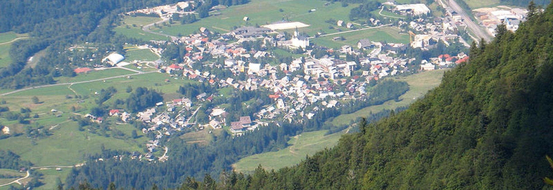 Bohinjska Bistrica lies in the valley between the river Sava Bohinjka, the hills Dobrava and Ajdovski gradec, and the streams Bistrica and Belica. The main road leading to the railway station divides the settlement into the upper and lower part Zgornja vas and Spodnja vas. Bohinjska Bistrica is an important tourist destination and a good starting point for trips to Črna prst, Vogel, Komna and Ratitovec. It also has a ski centre at Kobla. The town is served by Bohinjska Bistrica railway station, with direct trains several times a day to Jesenice and Nova Gorica. In addition, regular buses travel directly to Ljubljana.
