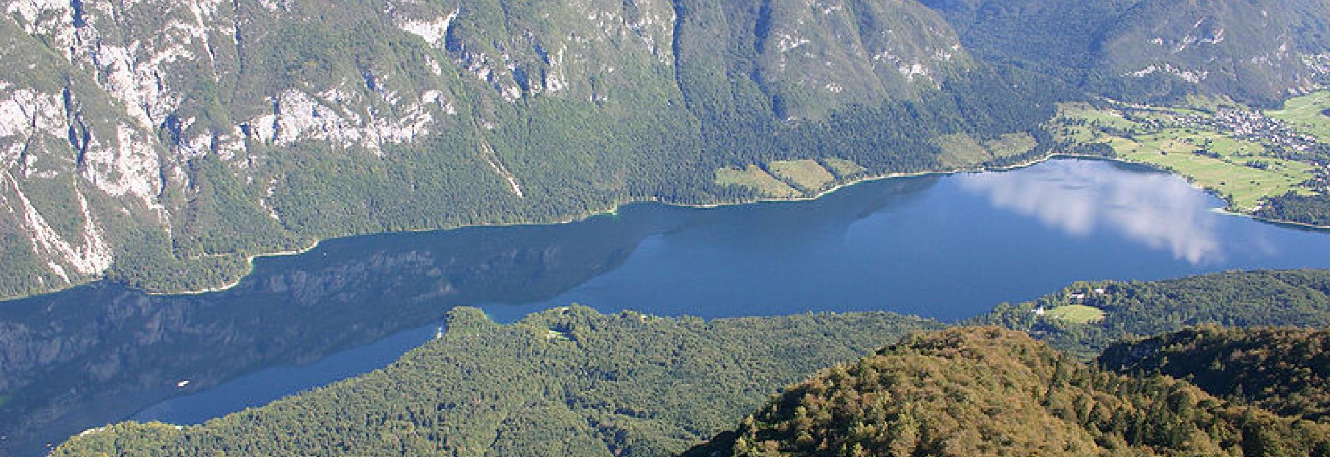 Lake Bohinj (Slovene: Bohinjsko jezero) is the largest permanent lake in Slovenia. Lake Bohinj is located in the north-west of the country, and is inside Triglav National Park. Lake Bohinj is 4.2 km long and 1 km at its maximum width. It is a glacial lake dammed by a moraine. The largest of the streams that flow into the lake, the Savica River ("little Sava"), is fed from Črno jezero (Black Lake), the largest lake in the Triglav Lakes Valley.